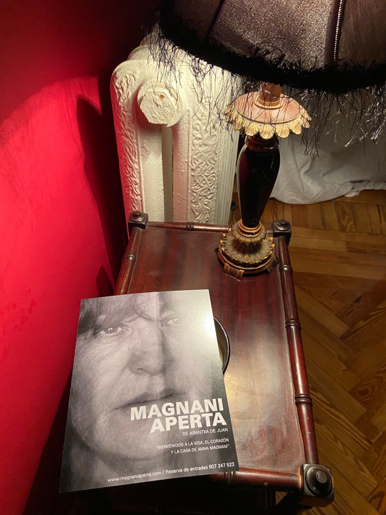 “Magnani Aperta” es un viaje, un viaje directo al centro del corazón del personaje a través del corazón de la actriz, sin paradas intermedias. Un encuentro cara a cara con la verdad, desde que entras por la puerta del portal de la Calle Desengaño en Madrid, hasta que sales por la puerta del Palazzo Altieri de Roma.
